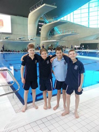 National finals Priory LSST Junior boys swimming Squad: Matthew Broughton, Zachary Peutrill, Tom Gray and Owen Jones.